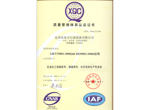 质量管理体系认证书